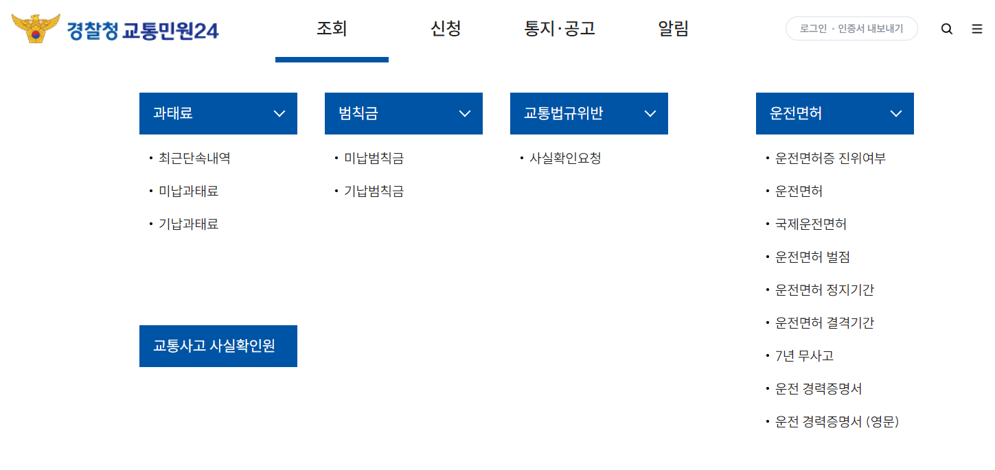이러한 메뉴 구성은 사용자가 필요한 정보를 빠르게 찾고 처리할 수 있도록 돕습니다. 복잡한 교통 민원도 이제 클릭 몇 번으로 해결할 수 있게 된 것이죠.